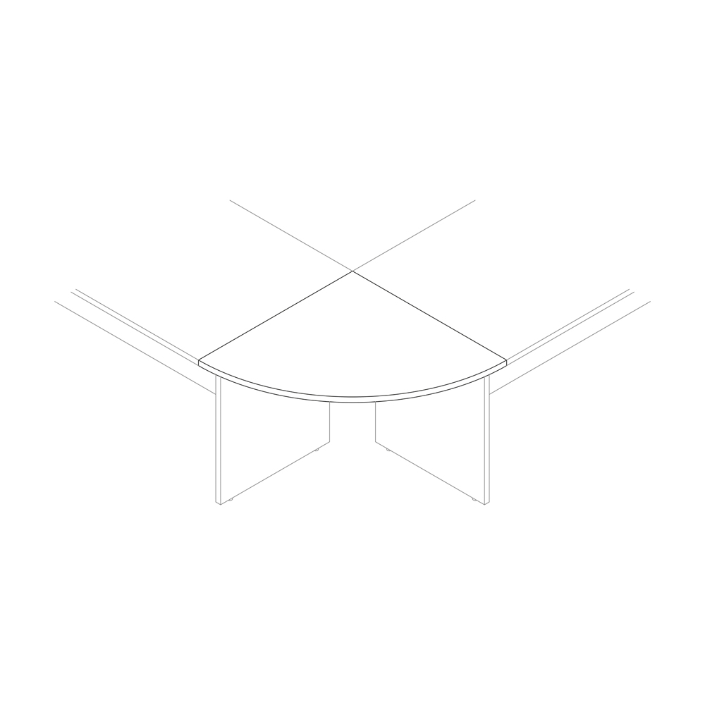 90° coupling for desks with sides in white melamine, with connecting brackets. Sizes: mm 800Lx800Dx25H.