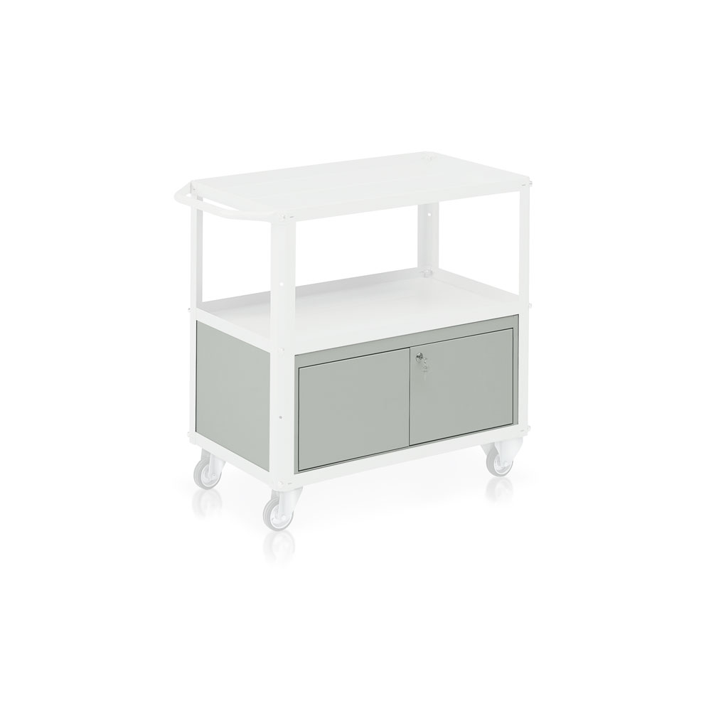 Additional lockable chest for trolley. Powder coating grey RAL 7038. Sizes: mm. 850Lx450Dx325H.