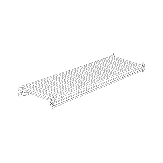 Complete shelves th 5/10 and 2 horizontal beams mm 65h for series 45. With brackets and 4 screws TE 5x20 with nuts, 10 small shelves 200 mm. Capacity 480 Kg. Sizes: mm 2000Lx500P.