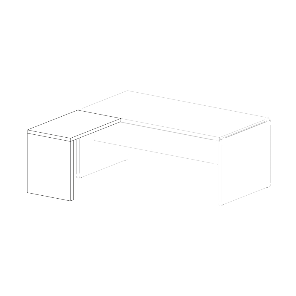 Extension for attachment to desk with top and side in dark elm melamine. Sizes: mm. 1000Lx600Dx740H.