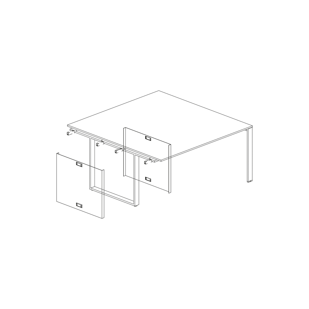 Pair of cable cover casings for central leg for meeting tables with U legs. In white painted metal. Sizes: mm 790Lx70Dx670H.