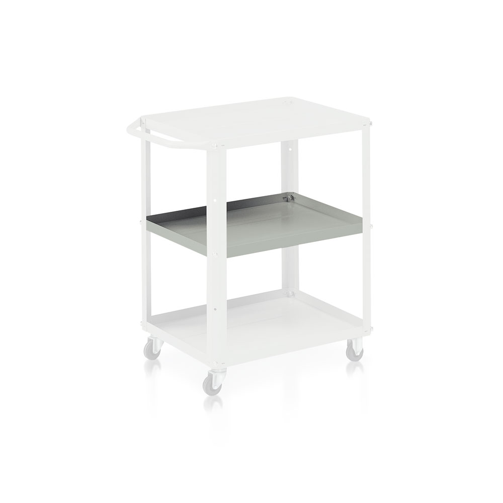 Tray for trolley item C039 in sheet metal. Capacity kg.40. Powder coating grey RAL 7038. Sizes: mm. 600Lx450Dx30H.