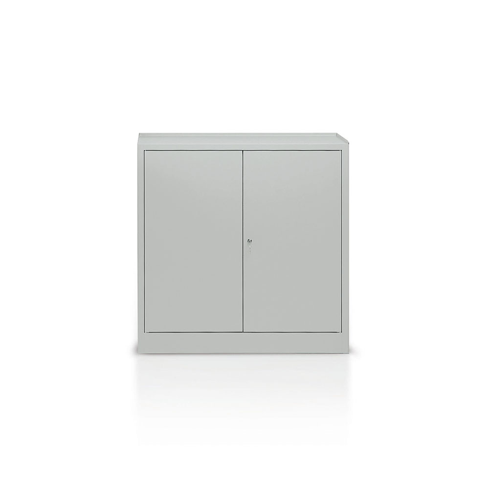 Armadietto in lamiera sp.8/10, ante battenti, 2 cassetti su guide senza cuscinetti e 2 piani mobili zincati (portata kg.100). Monoblocco. Verniciatura a polvere grigio RAL 7038. Dim.: mm.1000x400x1000h.