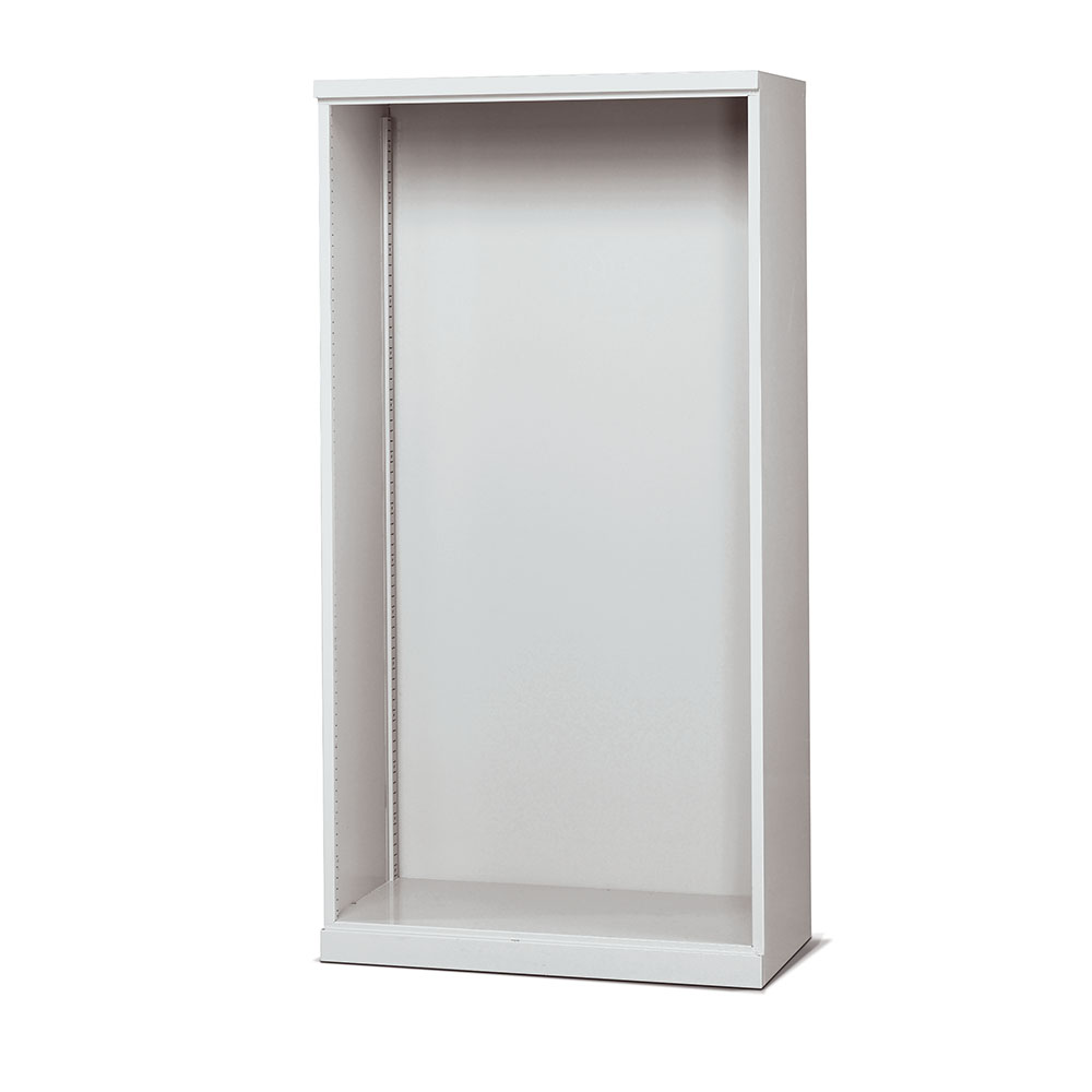 Armadio portautensili in lamiera a giorno da attrezzare, con 2 staffe per pavimento e 2 per parete. Portata kg.800. Verniciatura a polvere grigio chiaro RAL 7035. Dim. esterne: mm.1023x555x2000h. Dim. utili: mm.998x500x1850h.