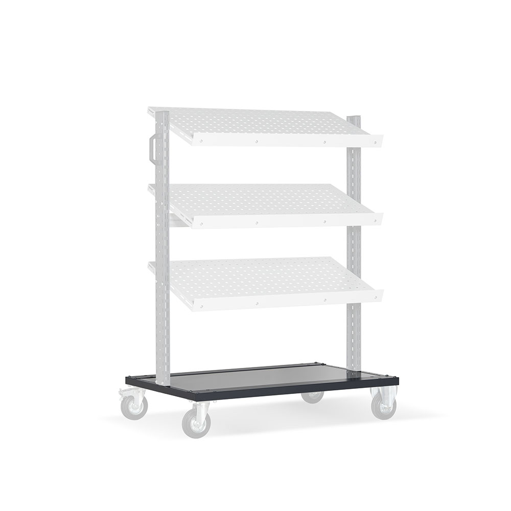 Base/piano per carrello. Portata kg.50. Verniciatura a forno grigio chiaro RAL 7035. Dim: mm.955x495x30h
