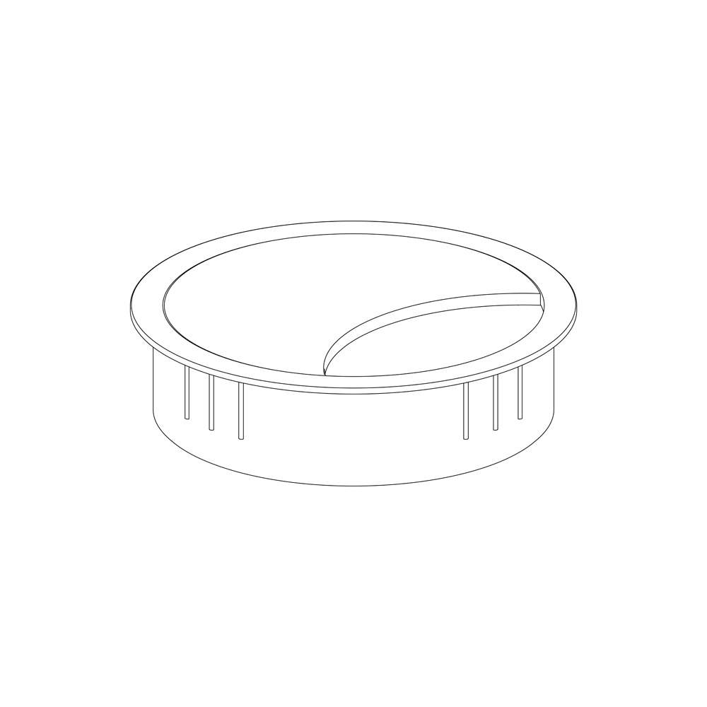 Boccola passacavi finitura argento diametro 80 mm completa di foro su piano (da specificare in fase di ordine).