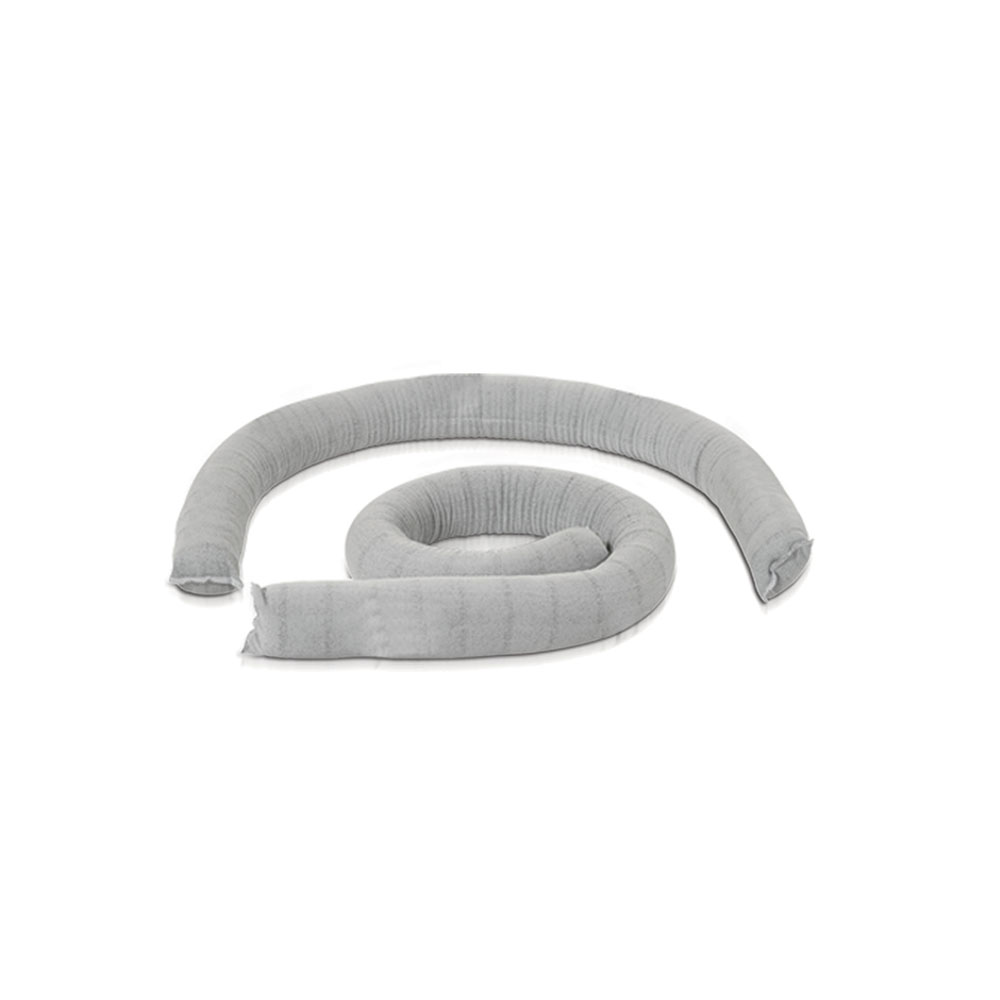 Salsicciotti assorbenti universali in fibra di polipropilene di elevata qualità, per liquidi a base acquosa o a base olio, solventi, acetone, benzina, di diametro mm.80 per m.1,2, assorbenza lt. 4,5 per salsiciotto, conf. 20 pz. Grigio.