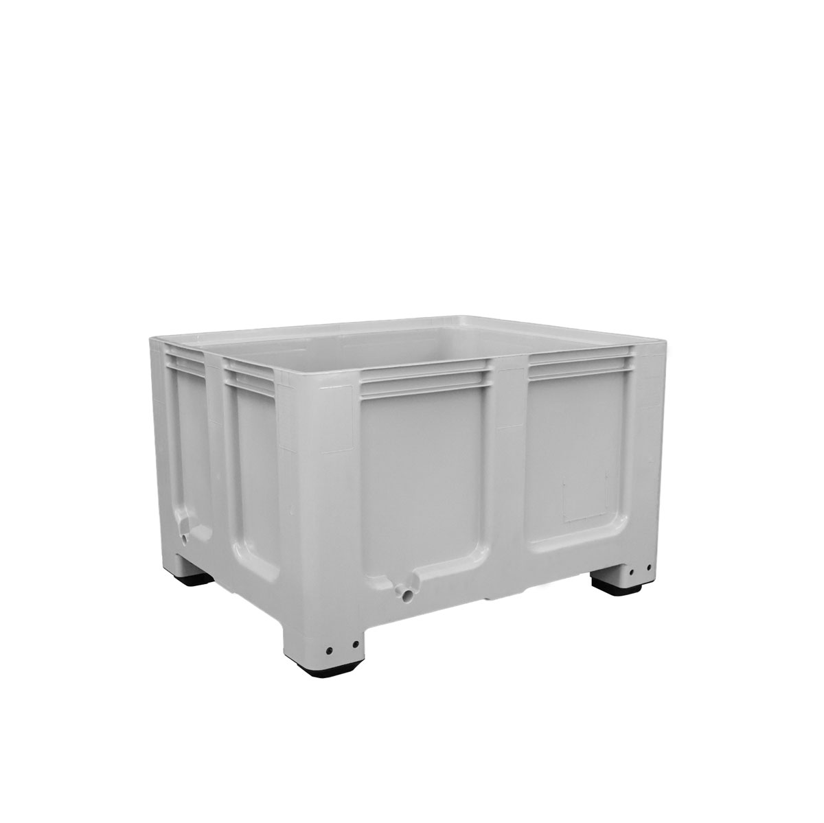 Contenitore sovrapponibile in polietilene alta densità. Idoneo per contatto con alimenti, elevata resistenza agli agenti chimici, a soluzioni saline, acidi, alcool e benzina. Portata kg.400. Capacità lt.525. Grigio. Dim. esterne: mm.1200x800x800h. Dim. utili:mm.1118x718x646h.