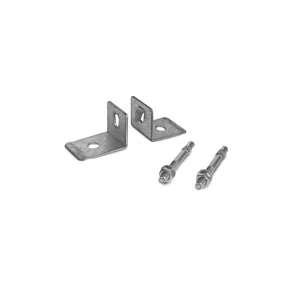 Corredo di 2 staffe e 2 tasselli M6x65 per fissaggio a pavimento.