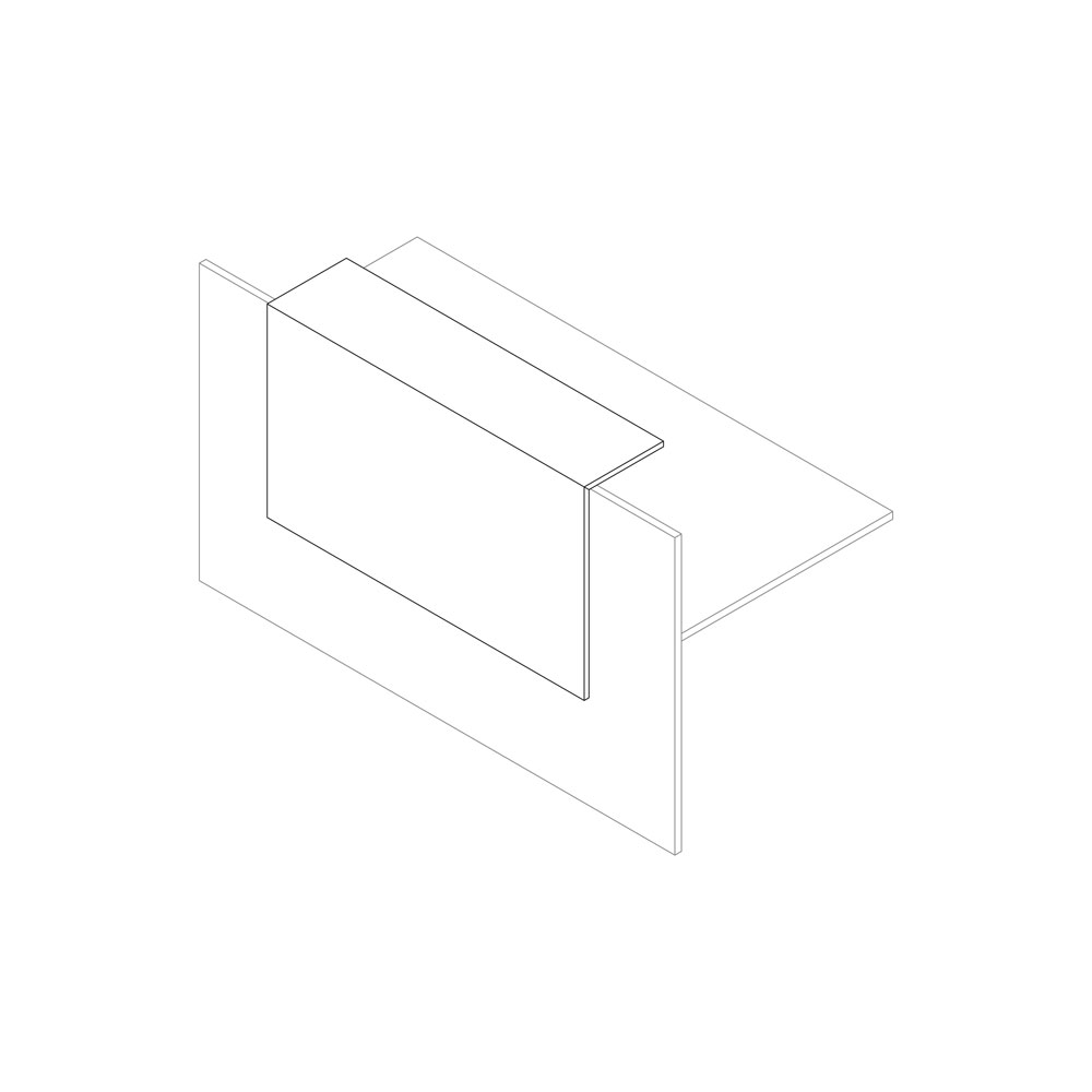 Mensola reception realizzata con vetri retrolaccati accoppiati a pannelli in melaminico bianco. Dim.: mm. 1200xx300x700h.