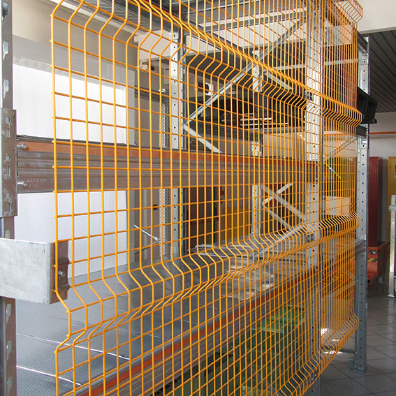 Pannello in rete elettrosaldata mm.40x40x4 per scaffalatura. Verniciatura a polvere giallo RAL 1007. Dim.: mm.2512x1890h.