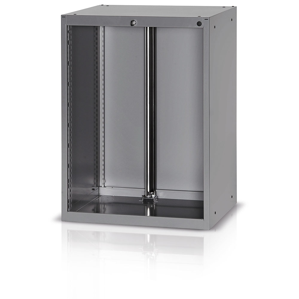 Scocca in lamiera con dispositivo antiribaltamento da attrezzare per mm.900. Verniciatura a polvere grigio scuro RAL 700. Dim.: mm.717x600x1000h
