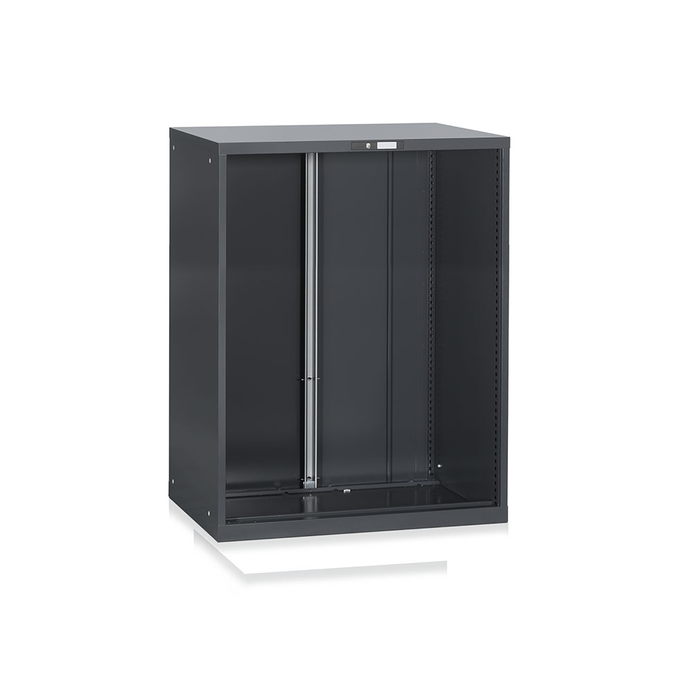 Scocca in lamiera con dispositivo antiribaltamento, da attrezzare per mm.1225. Verniciatura a polvere antracite RAL 7016. Dim.: mm.1023x725x1325h