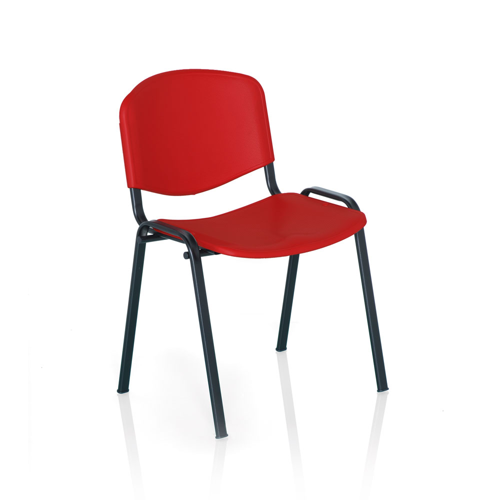 Sedia NETTUNO fissa impilabile con struttura a 4 gambe in tubolare di acciaio ovale verniciata colore nero, sedile e schienale in polipropilene opaco rosso. Impilabile.