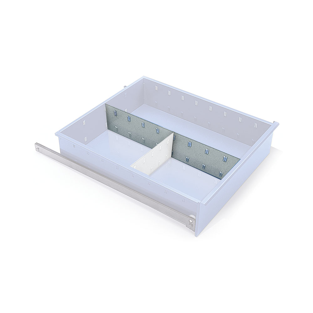 Separatore longitudinale asolato per cassetto di mm.70h. Zincato. Dim.: mm.540x48h.