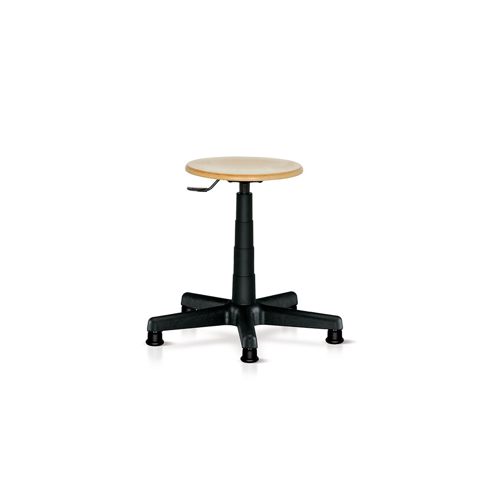 Sgabello girevole con pattini, sedile in faggio, elevazione a gas da mm.370h a mm.500h. Smontato.