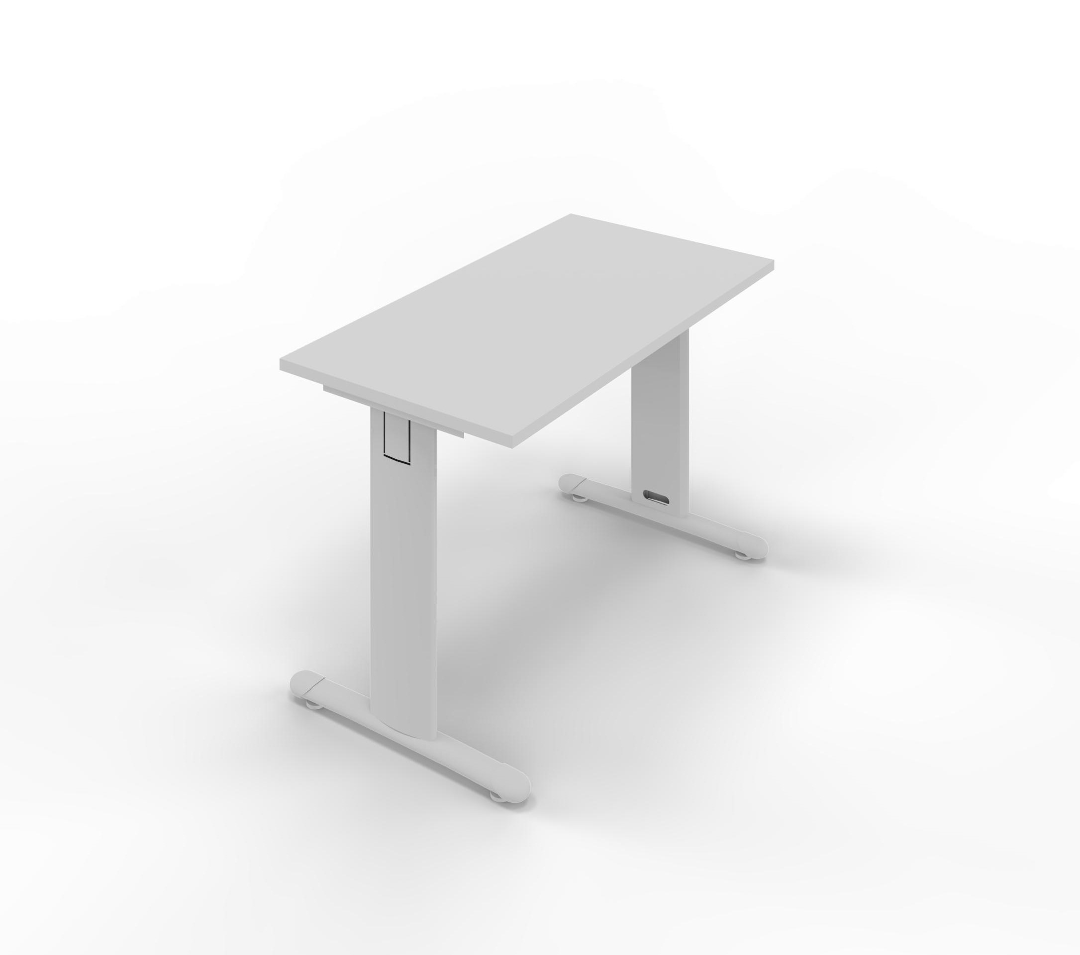 Tavolo di servizio con gambe a "T" standard. Piano in melaminico grigio nuvola sp. 25 mm, gambe in acciaio verniciato colore alluminio goffato. Dim.: mm. 800x600x745h.