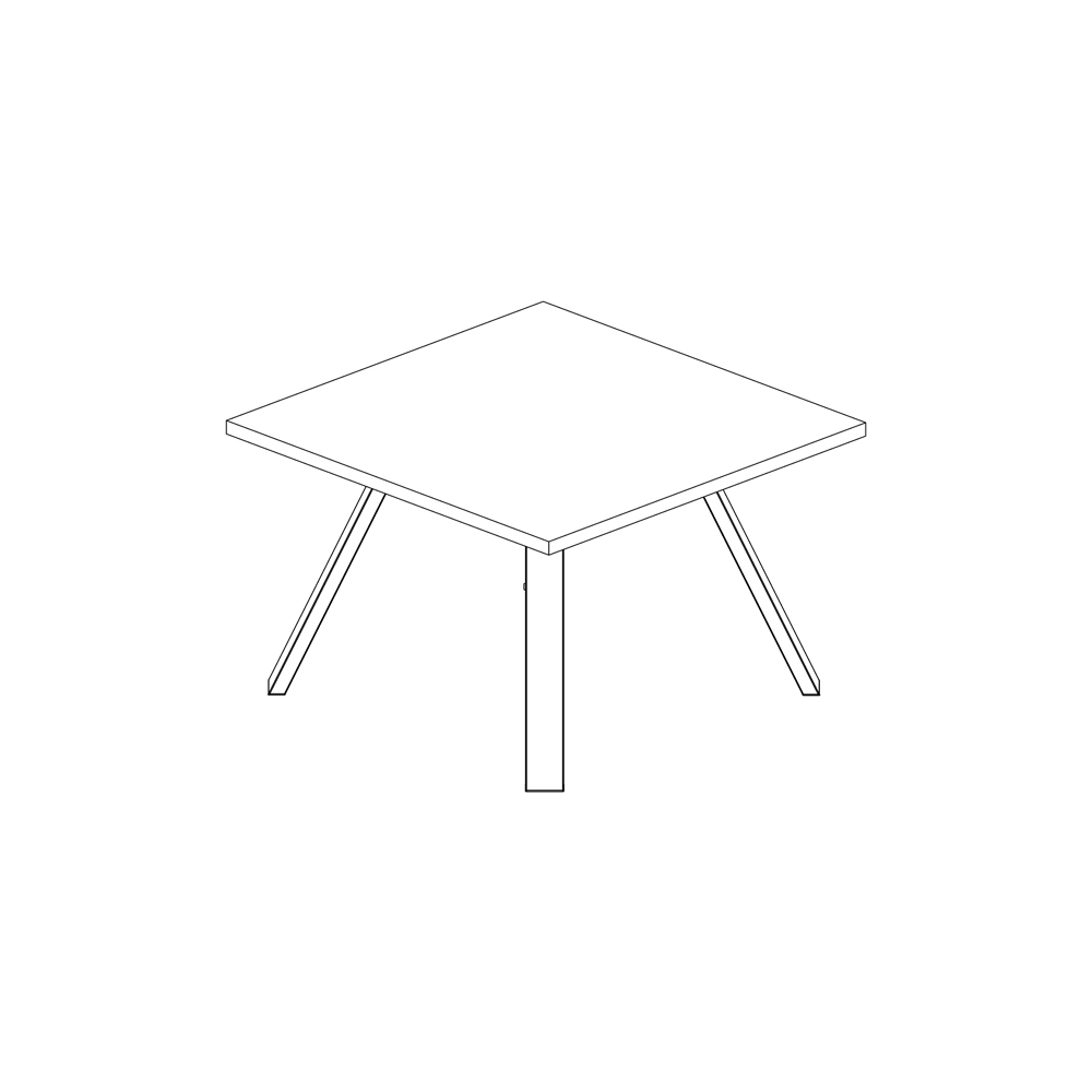 Tavolo riunione quandrato con gambe a "K". Piano in melaminico eucalipto sp. 38 mm e struttura in acciaio verniciato nero. Dim.: mm. 1180x1200x760h.