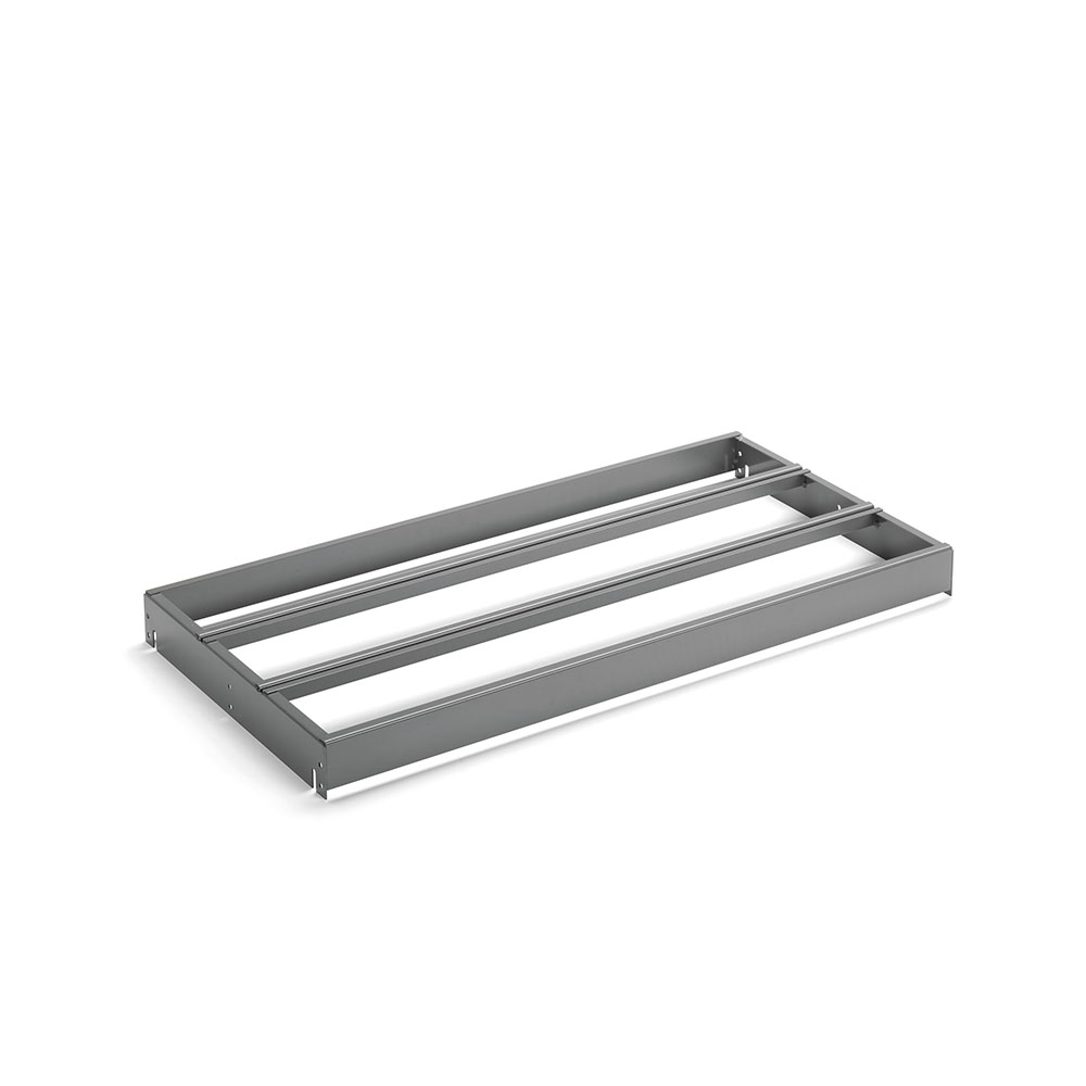 Telaio portaboccole in lamiera a 3 file con supporti inclinati. Verniciatura a polvere grigio scuro RAL 7000. Dim.: mm.965x500x68h.