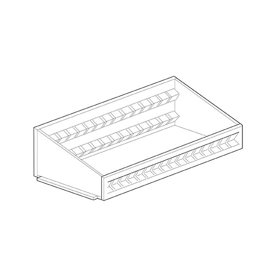 Vaschetta di mm.800x600x100/200h con 2 rinforzi e 2 divisori. Portata kg.140. Zincata.